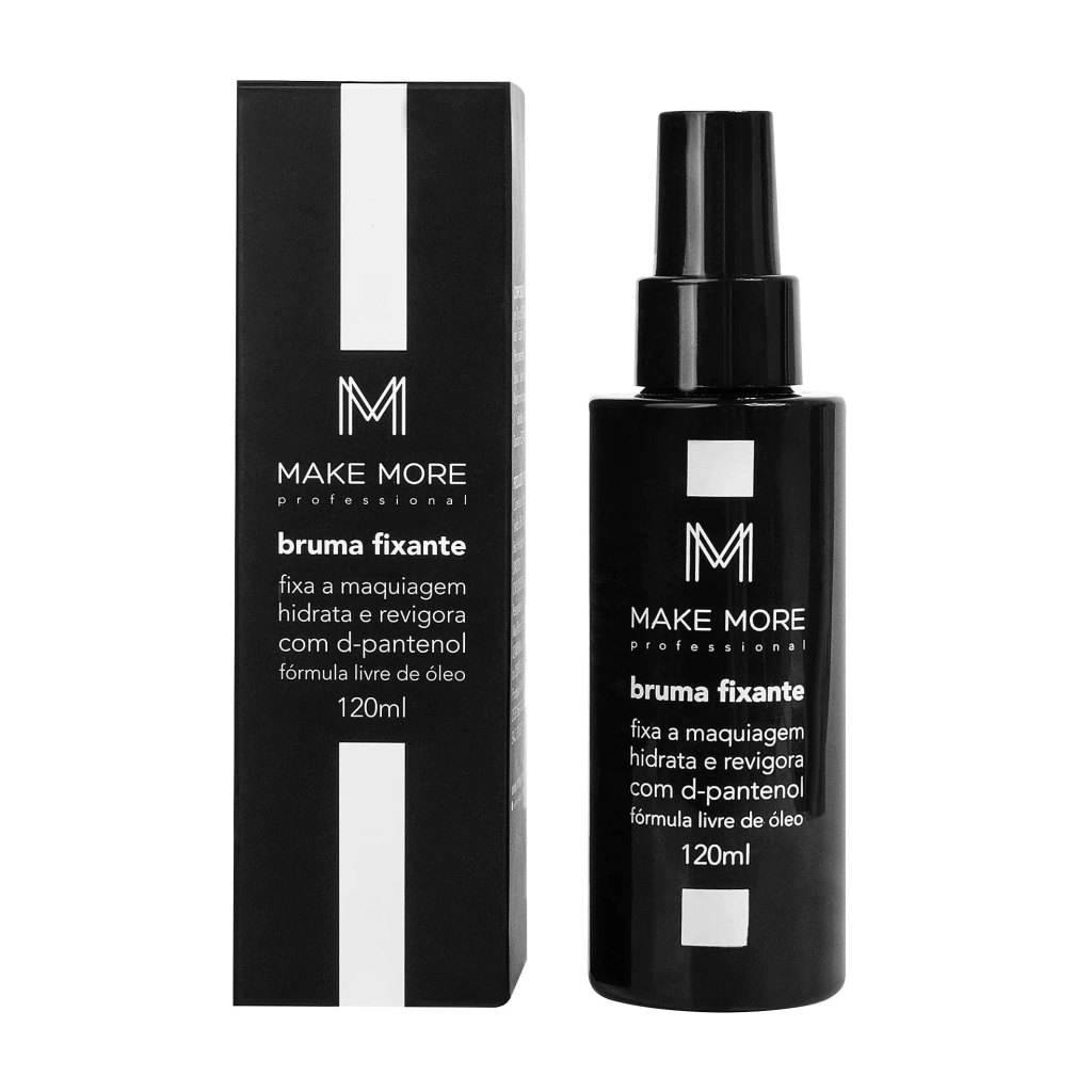 Bruma fixante de maquiagem. Make More promete alta fixação por longas horas e um acabamento natural.